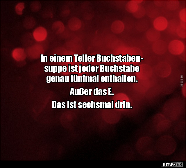 In einem Teller Buchstaben- suppe ist jeder Buchstabe genau fünfmal enthalten. Außer das E. Das ist sechsmal drin.