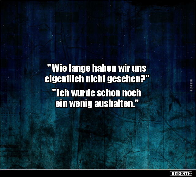 " Wie lange haben wir uns eigentlich nicht gesehen?" " Ich wurde schon noch ein wenig aushalten."
