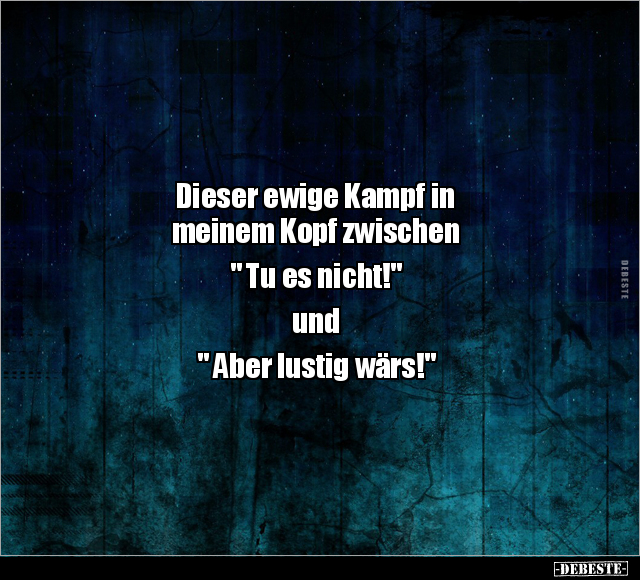 Dieser ewige Kampf in meinem Kopf zwischen " Tu es nicht!" und " Aber lustig wärs!"