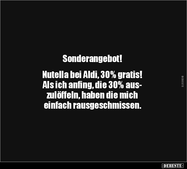 Sonderangebot! Nutella bei Aldi, 30% gratis! Als ich anfing, die 30% aus- zulöffeln, haben die mich einfach rausgeschmissen.