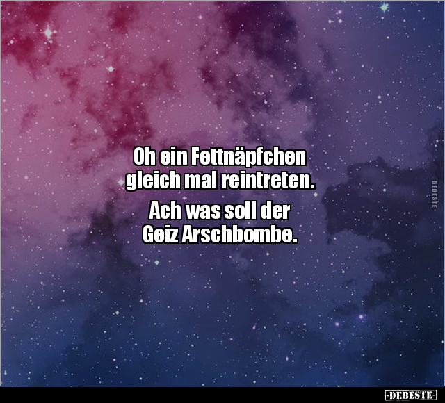 Oh ein Fettnäpfchen gleich mal reintreten. Ach was soll der Geiz Arschbombe.