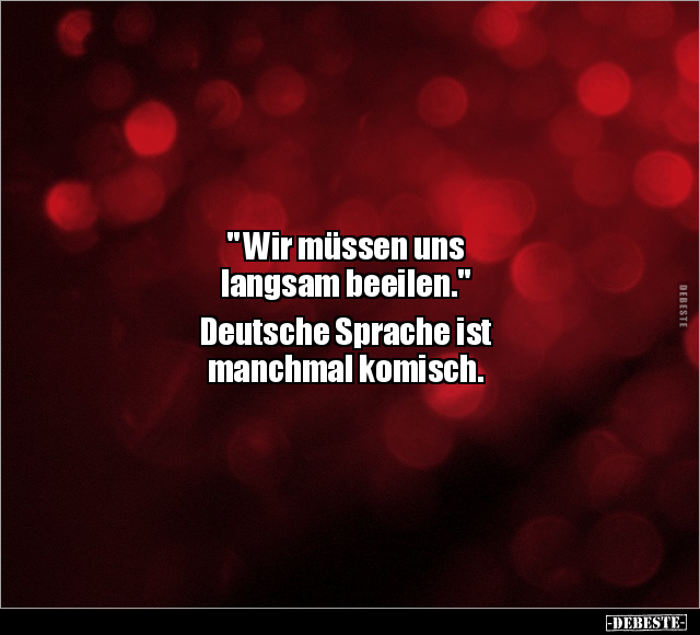 " Wir müssen uns langsam beeilen." Deutsche Sprache ist manchmal komisch.