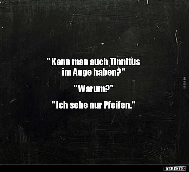 " Kann man auch Tinnitus im Auge haben?" " Warum?" " Ich sehe nur Pfeifen."