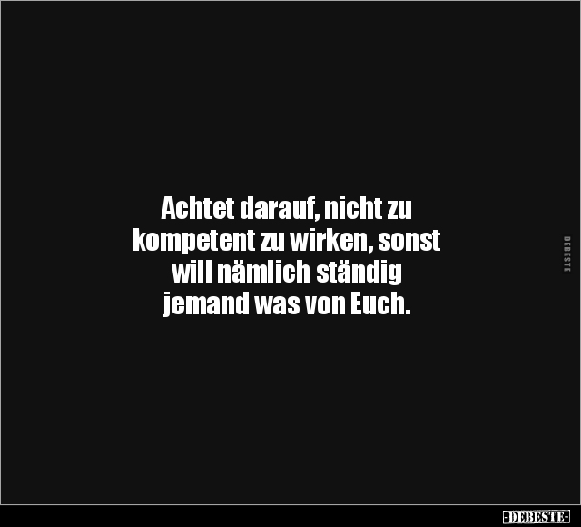 Achtet darauf, nicht zu kompetent zu wirken, sonst will nämlich ständig jemand was von Euch.