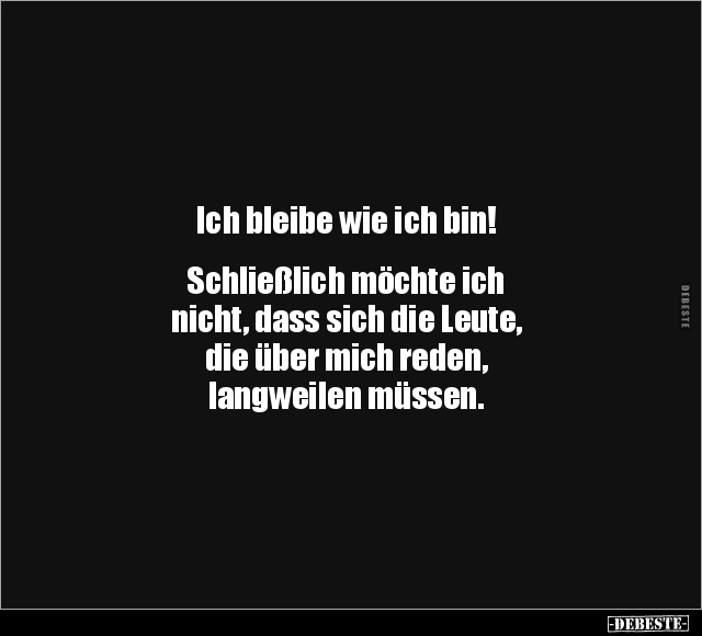 Ich bleibe wie ich bin! Schließlich möchte ich nicht, dass sich die Leute, die über mich reden, langweilen müssen.