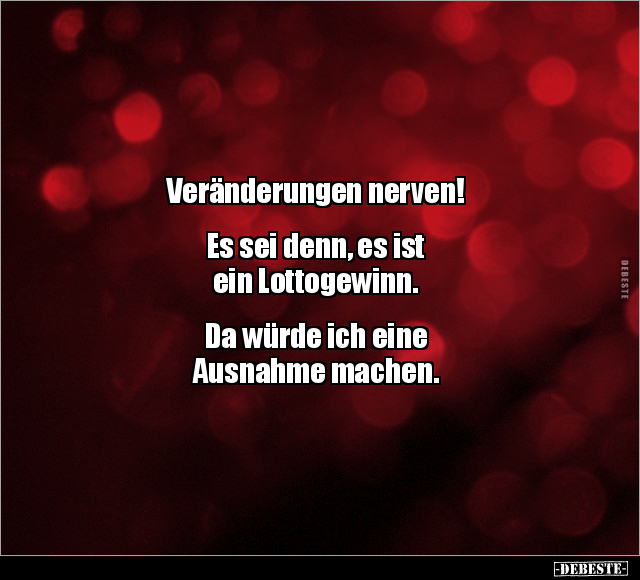 Veränderungen nerven! Es sei denn, es ist ein Lottogewinn. Da würde ich eine Ausnahme machen.