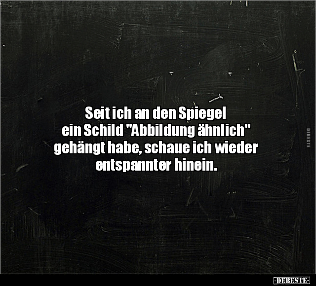 Seit ich an den Spiegel ein Schild "Abbildung ähnlich" gehängt habe, schaue ich wieder entspannter hinein.