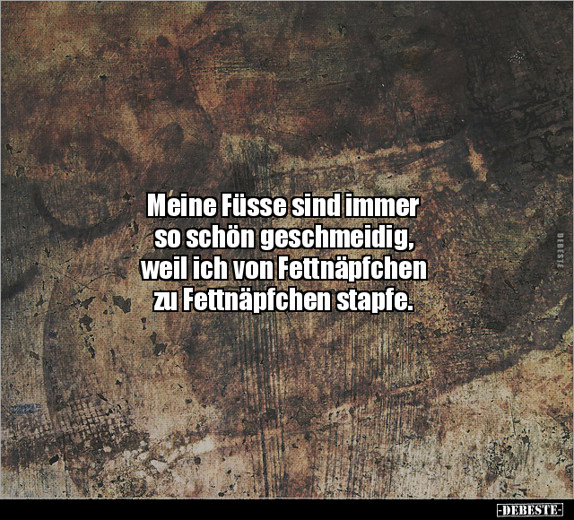 Meine Füsse sind immer so schön geschmeidig, weil ich von Fettnäpfchen zu Fettnäpfchen stapfe.