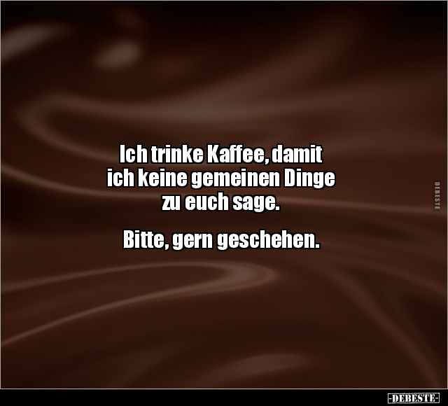 Ich trinke Kaffee, damit ich keine gemeinen Dinge zu euch sage. Bitte, gern geschehen.