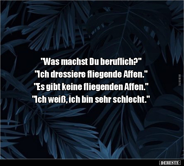 "Was machst Du beruflich?" "Ich dressiere fliegende Affen." "Es gibt keine fliegenden Affen." "Ich weiß, ich bin sehr schlecht."