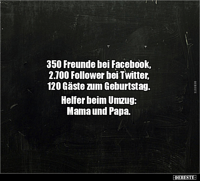 350 Freunde bei Facebook, 2.700 Follower bei Twitter, 120 Gäste zum Geburtstag. Helfer beim Umzug: Mama und Papa.
