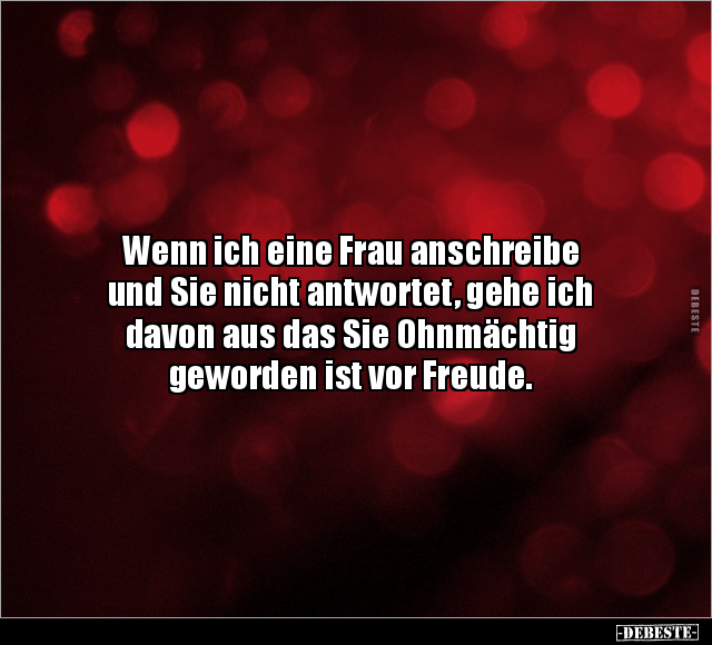Wenn ich eine Frau anschreibe und Sie nicht antwortet, gehe ich davon aus das Sie Ohnmächtig geworden ist vor Freude.