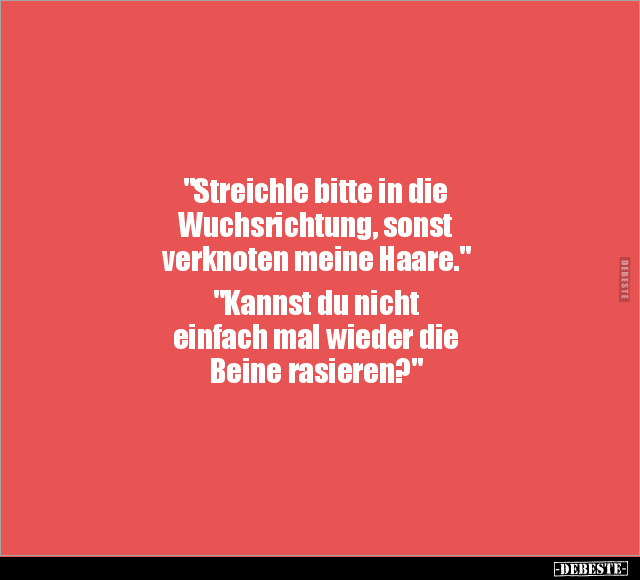 "Streichle bitte in die Wuchsrichtung, sonst verknoten meine Haare." "Kannst du nicht einfach mal wieder die Beine rasieren?"