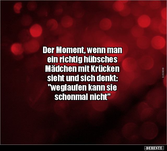 Der Moment, wenn man ein richtig hübsches Mädchen mit Krücken sieht und sich denkt: "weglaufen kann sie schonmal nicht"