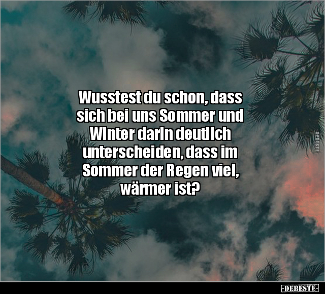 Wusstest du schon, dass sich bei uns Sommer und Winter darin deutlich unterscheiden, dass im Sommer der Regen viel, wärmer ist?