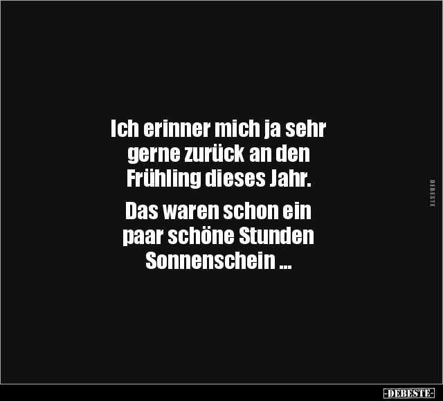 Ich erinner mich ja sehr gerne zurück an den Frühling dieses Jahr. Das waren schon ein paar schöne Stunden Sonnenschein ...