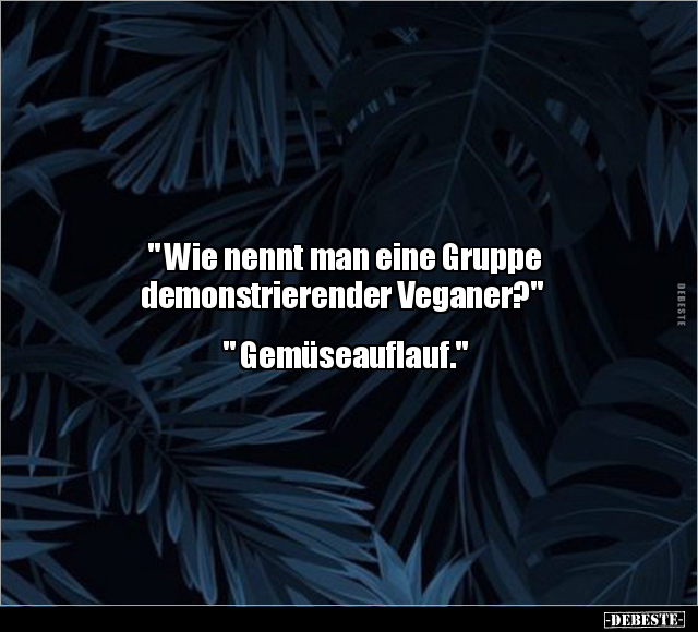" Wie nennt man eine Gruppe demonstrierender Veganer?" " Gemüseauflauf."