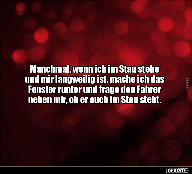 Manchmal, wenn ich im Stau stehe und mir langweilig ist, mache ich das Fenster runter und frage den Fahrer neben mir, ob er auch im Stau steht.