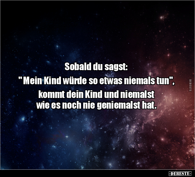 Sobald du sagst: " Mein Kind würde so etwas niemals tun", kommt dein Kind und niemalst wie es noch nie geniemalst hat.