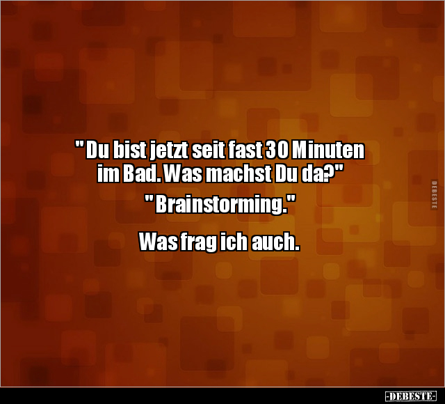 " Du bist jetzt seit fast 30 Minuten im Bad. Was machst Du da?" " Brainstorming." Was frag ich auch.