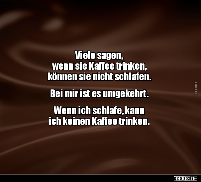 Viele sagen, wenn sie Kaffee trinken, können sie nicht schlafen. Bei mir ist es umgekehrt. Wenn ich schlafe, kann ich keinen Kaffee trinken.