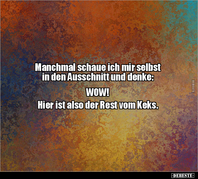 Manchmal schaue ich mir selbst in den Ausschnitt und denke: WOW! Hier ist also der Rest vom Keks.