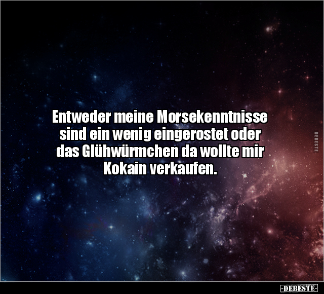 Entweder meine Morsekenntnisse sind ein wenig eingerostet oder das Glühwürmchen da wollte mir Kokain verkaufen.