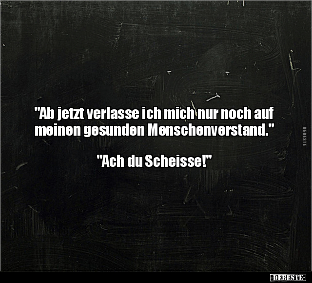 "Ab jetzt verlasse ich mich nur noch auf meinen gesunden Menschenverstand." "Ach du Scheisse!"