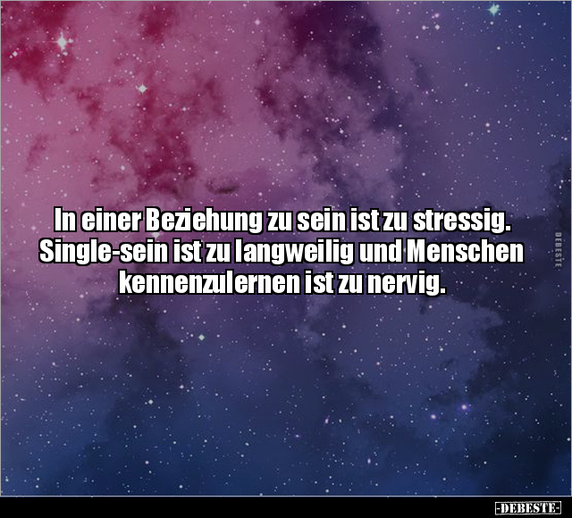 In einer Beziehung zu sein ist zu stressig. Single-sein ist zu langweilig und Menschen kennenzulernen ist zu nervig.
