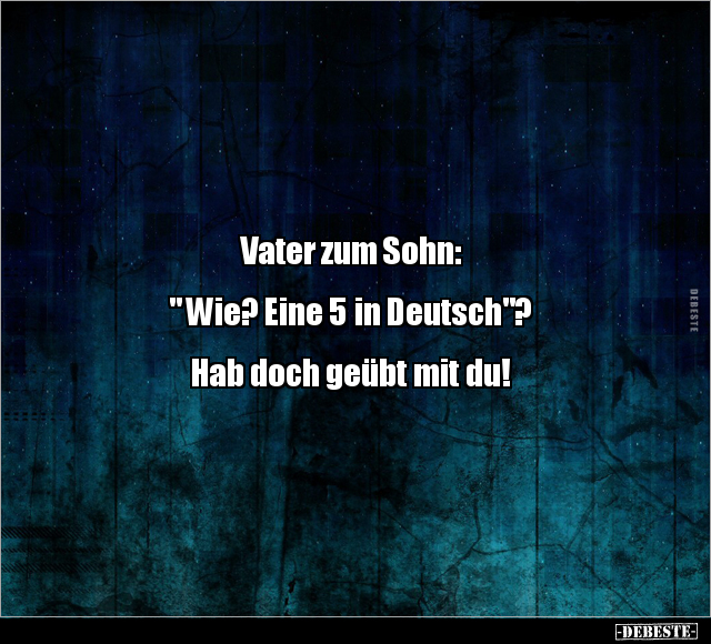 Vater zum Sohn: " Wie? Eine 5 in Deutsch"? Hab doch geübt mit du!