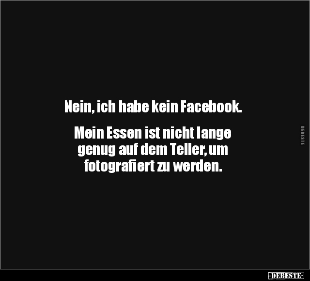 Nein, ich habe kein Facebook. Mein Essen ist nicht lange genug auf dem Teller, um fotografiert zu werden.