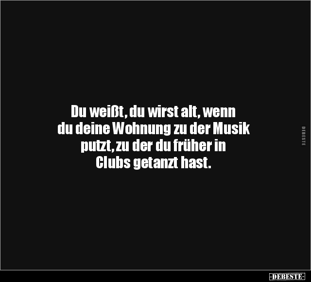 Du weißt, du wirst alt, wenn du deine Wohnung zu der Musik putzt, zu der du früher in Clubs getanzt hast.