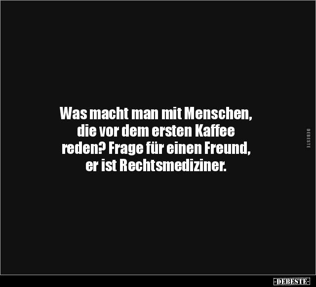 Was macht man mit Menschen, die vor dem ersten Kaffee reden? Frage für einen Freund, er ist Rechtsmediziner.