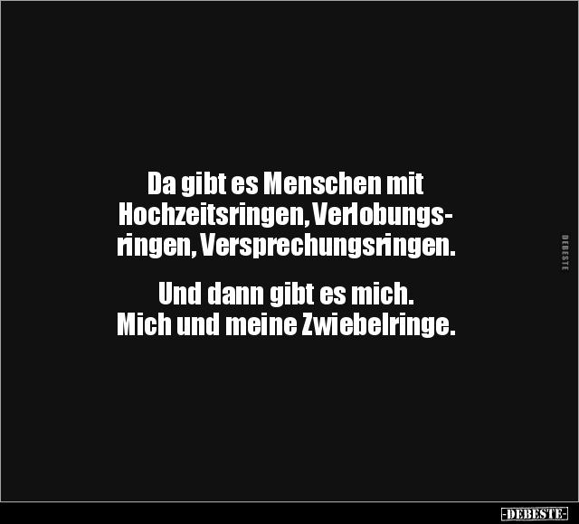 Da gibt es Menschen mit Hochzeitsringen, Verlobungs- ringen, Versprechungsringen. Und dann gibt es mich. Mich und meine Zwiebelringe.