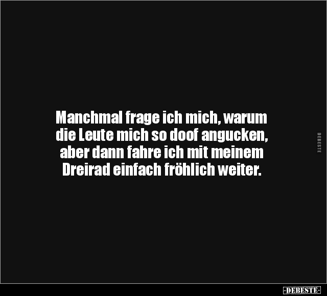 Manchmal frage ich mich, warum die Leute mich so doof angucken, aber dann fahre ich mit meinem Dreirad einfach fröhlich weiter.