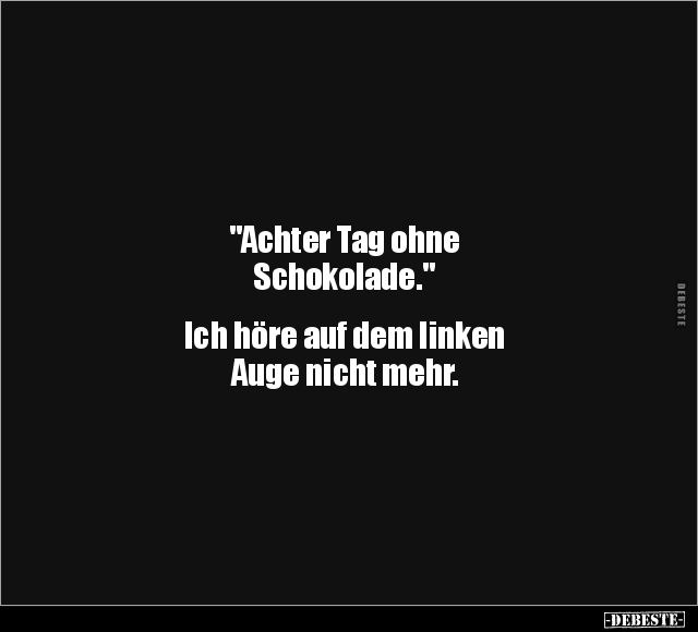 "Achter Tag ohne Schokolade." Ich höre auf dem linken Auge nicht mehr.