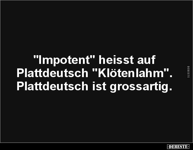 "Impotent" heisst auf Plattdeutsch "Klötenlahm". Plattdeutsch ist grossartig.