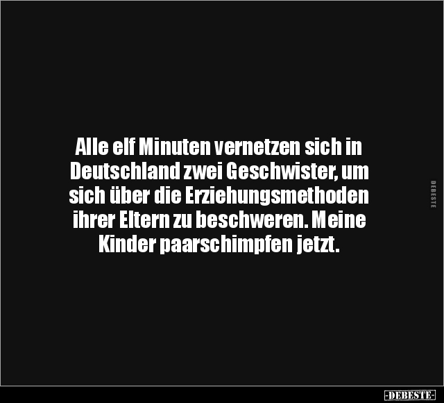 Alle elf Minuten vernetzen sich in Deutschland zwei Geschwister, um sich über die Erziehungsmethoden ihrer Eltern zu beschweren. Meine Kinder paarschimpfen jetzt.