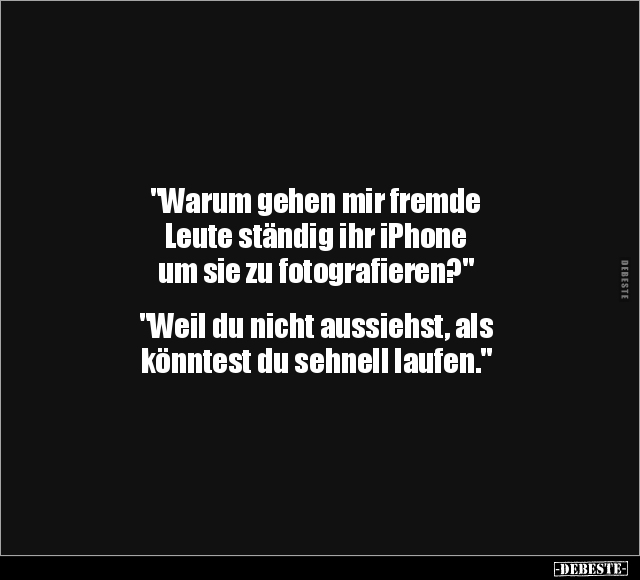 "Warum gehen mir fremde Leute ständig ihr iPhone um sie zu fotografieren?" "Weil du nicht aussiehst, als könntest du sehnell laufen."