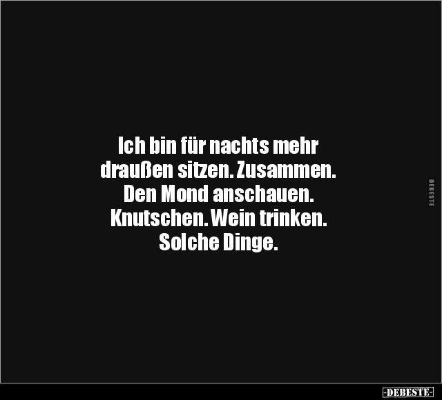 Ich bin für nachts mehr draußen sitzen. Zusammen. Den Mond anschauen. Knutschen. Wein trinken. Solche Dinge.