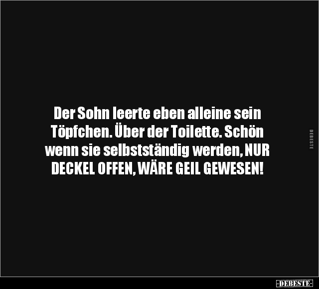 Der Sohn leerte eben alleine sein Töpfchen. Über der Toilette. Schön wenn sie selbstständig werden, NUR DECKEL OFFEN, WÄRE GEIL GEWESEN!