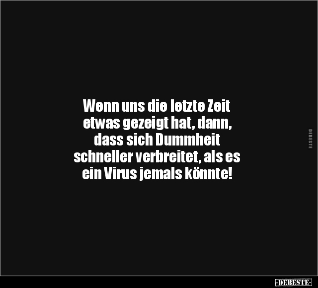 Wenn uns die letzte Zeit etwas gezeigt hat, dann, dass sich Dummheit schneller verbreitet, als es ein Virus jemals könnte!