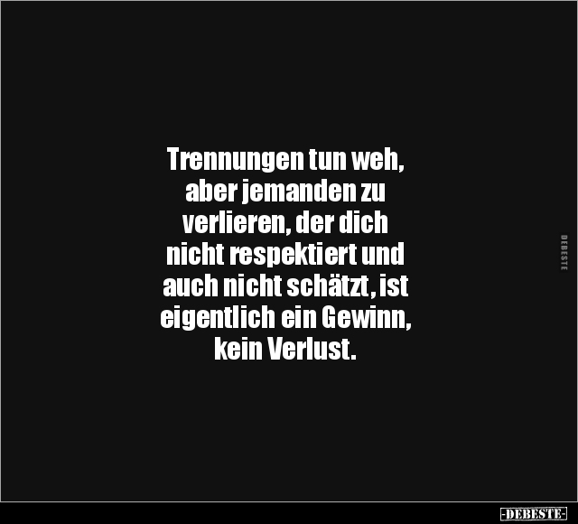 Trennungen tun weh, aber jemanden zu verlieren, der dich nicht respektiert und auch nicht schätzt, ist eigentlich ein Gewinn, kein Verlust.