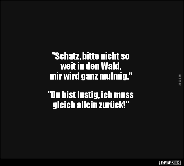 "Schatz, bitte nicht so weit in den Wald, mir wird ganz mulmig." "Du bist lustig, ich muss gleich allein zurück!"