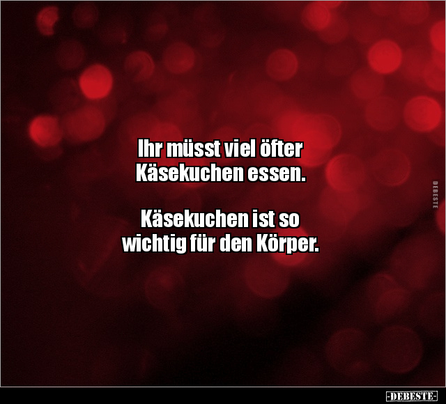 Ihr müsst viel öfter Käsekuchen essen. Käsekuchen ist so wichtig für den Körper.