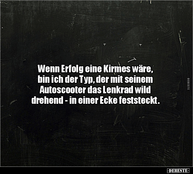 Wenn Erfolg eine Kirmes wäre, bin ich der Typ, der mit seinem Autoscooter das Lenkrad wild drehend - in einer Ecke feststeckt.