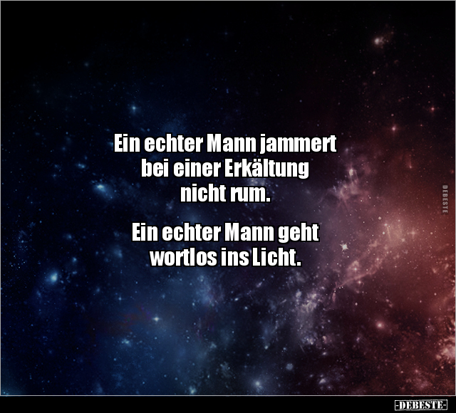 Ein echter Mann jammert bei einer Erkältung nicht rum. Ein echter Mann geht wortlos ins Licht.