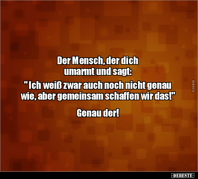 Der Mensch, der dich umarmt und sagt: " Ich weiß zwar auch noch nicht genau wie, aber gemeinsam schaffen wir das!" Genau der!