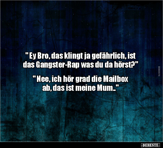 " Ey Bro, das klingt ja gefährlich, ist das Gangster-Rap was du da hörst?" " Nee, ich hör grad die Mailbox ab, das ist meine Mum.."
