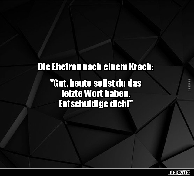 Die Ehefrau nach einem Krach: "Gut, heute sollst du das letzte Wort haben. Entschuldige dich!"